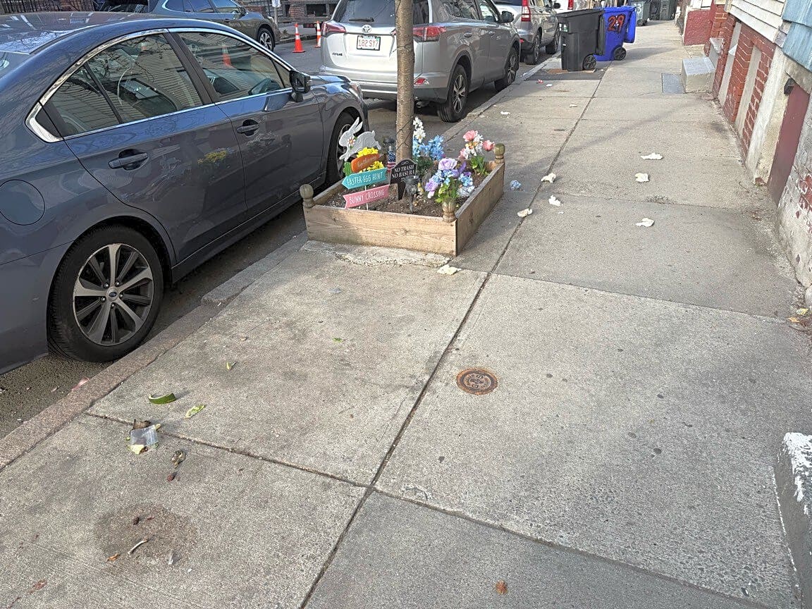 33 Sycamore St, Boston, MA 02131Large tree trunk looks like it will come down. Right over the children’s area. In the fairy garden in the back corner. R