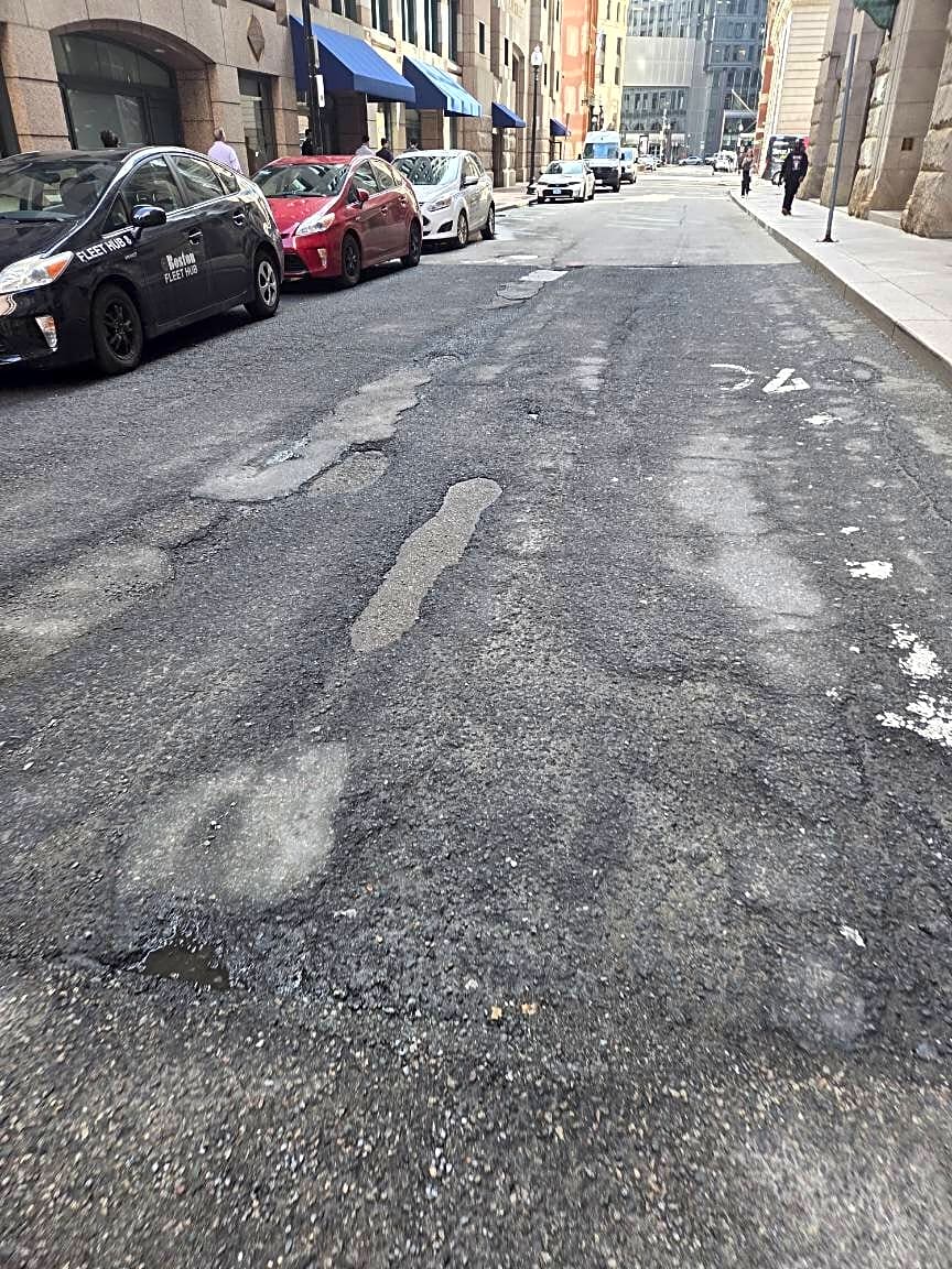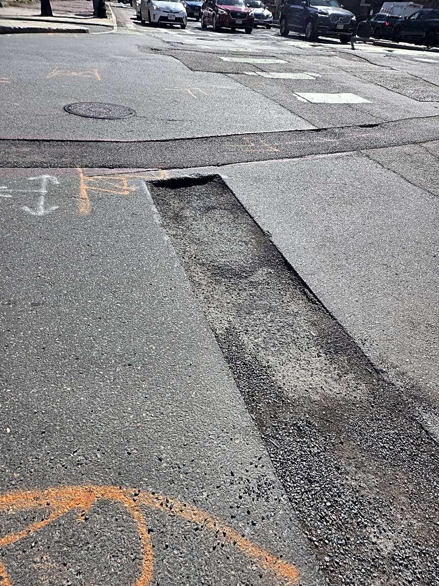 Intersection Of Cambridge St And Staniford St, Boston, MaPotholes from construction.