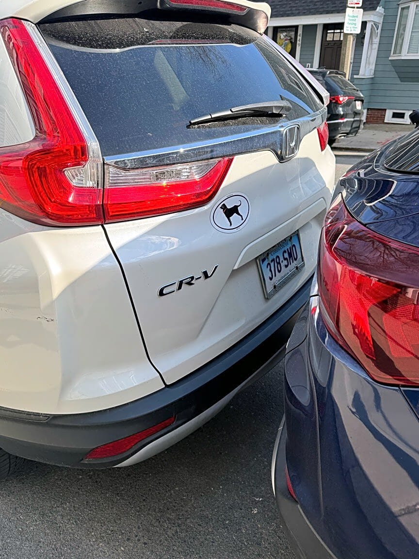 444 E Sixth St, South Boston, Ma, 02127Out of state car has been here for a few days parking on a residential street INSIDE of a handicapped spot. Handicapped Resident got sandwiched in and is having an issue getting out of the spot.